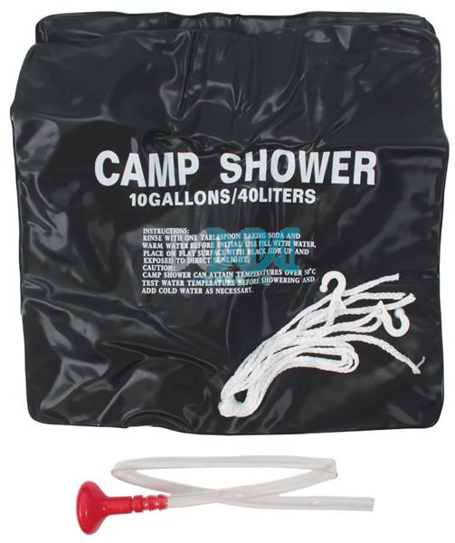 – Instructions For Use1. Rinse The Shower With Warm Water And 1Table Spoon Of Baking Soda Before Initial Use.2. Fill With Water, Place On A Flat Surface With Black Side Up And Expose To Direct Sunlight.3. Maximum Temperature Should Be Achieved In Approximately 3 Hours, It Can Makes The 15? Water Reach 45?.4. Test The Water Temperature Before Use As Temperature Can Get Up To 50? In Strong Sunshine.5. Suspend Using The Hanging Cord And Suspension Handle And Shower Is Ready For Use.Warnings1. Camp Shower Can Heat Water Up To Over 50?. You Must Test Water Temperature Before Showering And Add Cold Water If Necessary.2. Please Don’T Heat The Water Over 50?, Or It Will Shorten The Service Life Of Bag.3. The Water Is Undrinkable.Specification pvc Material Non Toxic / Anti-Uv Coatingcolor: BlackCapacity: 10 Gallon/ 40L – Size: 60 cm X 40CmLength Of Pipe: 60CmPackage Includes:1 ? Shower Bag With Pipe1 ? Hanging Nylon Cord With A Hook1 X Flexible Tube, Tap, Shower Head