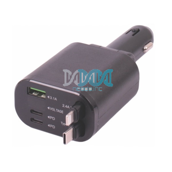 Car Charger 5 In 1 With Retractable Charging Cables