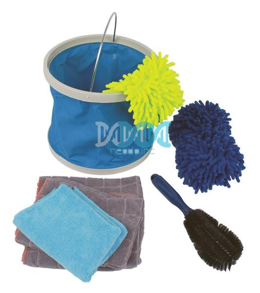 – 7 Piece Car Cleaning Kitincludes:1 X Foldable Bucket2 X Noodle Wash Mits3 X Microfibre Cloths1 X Mag Wheel Brush