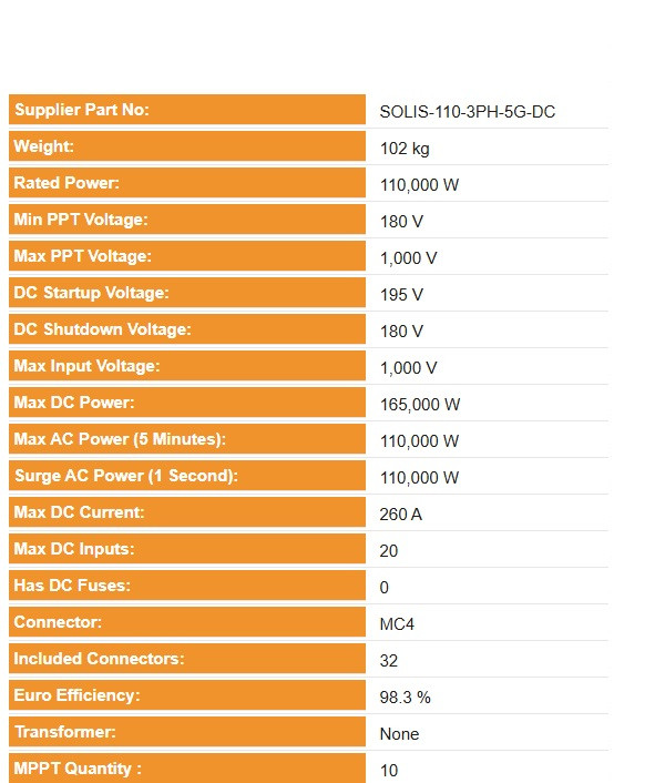 Solis 110kW 5G 3 Phase 10x MPPT – DC