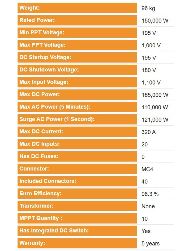 - 7 MPPTs, max. efficiency 98.8%